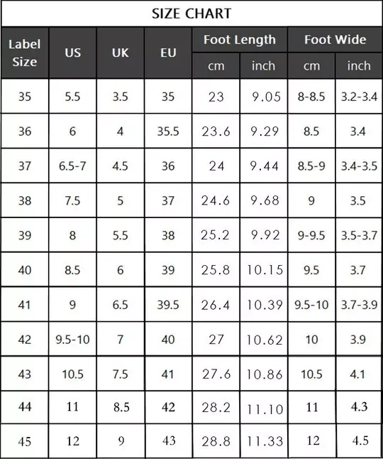 - The foot length refers to the insole length. Eg. US 7.5 (9.4"/24cm) is the length of the insole only